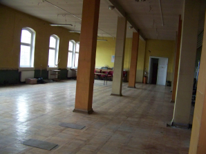 Wejście do pomieszczeń odbywa się ze wspólnej klatki schodowej, na której znajduje się toaleta. Pomieszczenia w średnim stanie technicznym, wyposażone w instalację elektryczną, centralne ogrzewanie, linię telefoniczną. Na podłogach drewniany parkiet. Okna nowe plastikowe. W jednym większym pomieszczeniu w środkowej części znajduje się osiem filarów podtrzymujących konstrukcję sufitu.
